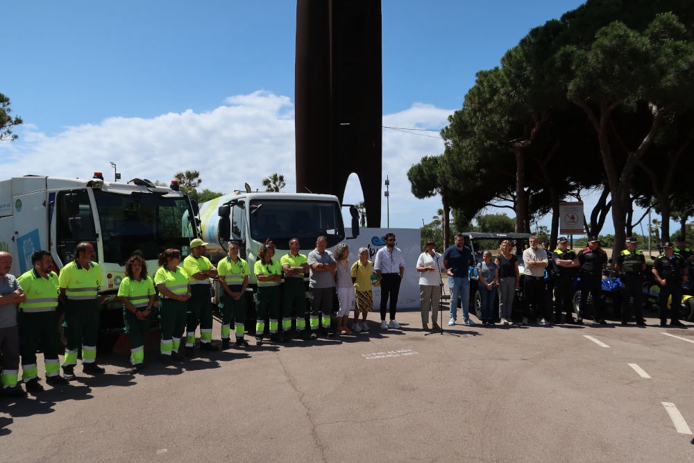Badia s’ha desplaçat aquest matí fins al monument de la vela de Gavà Mar per presentar aquest inici de la temporada de bany. Allà ha saludat a representants de tots els col·lectius implicats en aquest dispositiu, des dels membres del Punt d’Informació Turística ubicat coms empre al costat del mateix monument de la vela fins als treballadors de Presec, passant òbviament pels agents de la Policia Municipal i dels Mossos d’Esquadra.