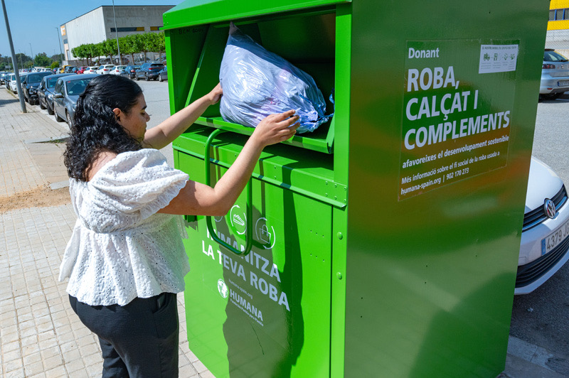 El residu tèxtil (la roba, el calçat, els complements i el tèxtil de la llar que ja no s’utilitzen) es diposita en els contenidors ubicats en llocs de fàcil accés, que es buiden periòdicament (entre un i dos cops per setmana) per a garantir-ne un bon servei. Posteriorment, es classifica a la planta de preparació per a la reutilització que Humana té a l’Ametlla del Vallès (Vallès Oriental).