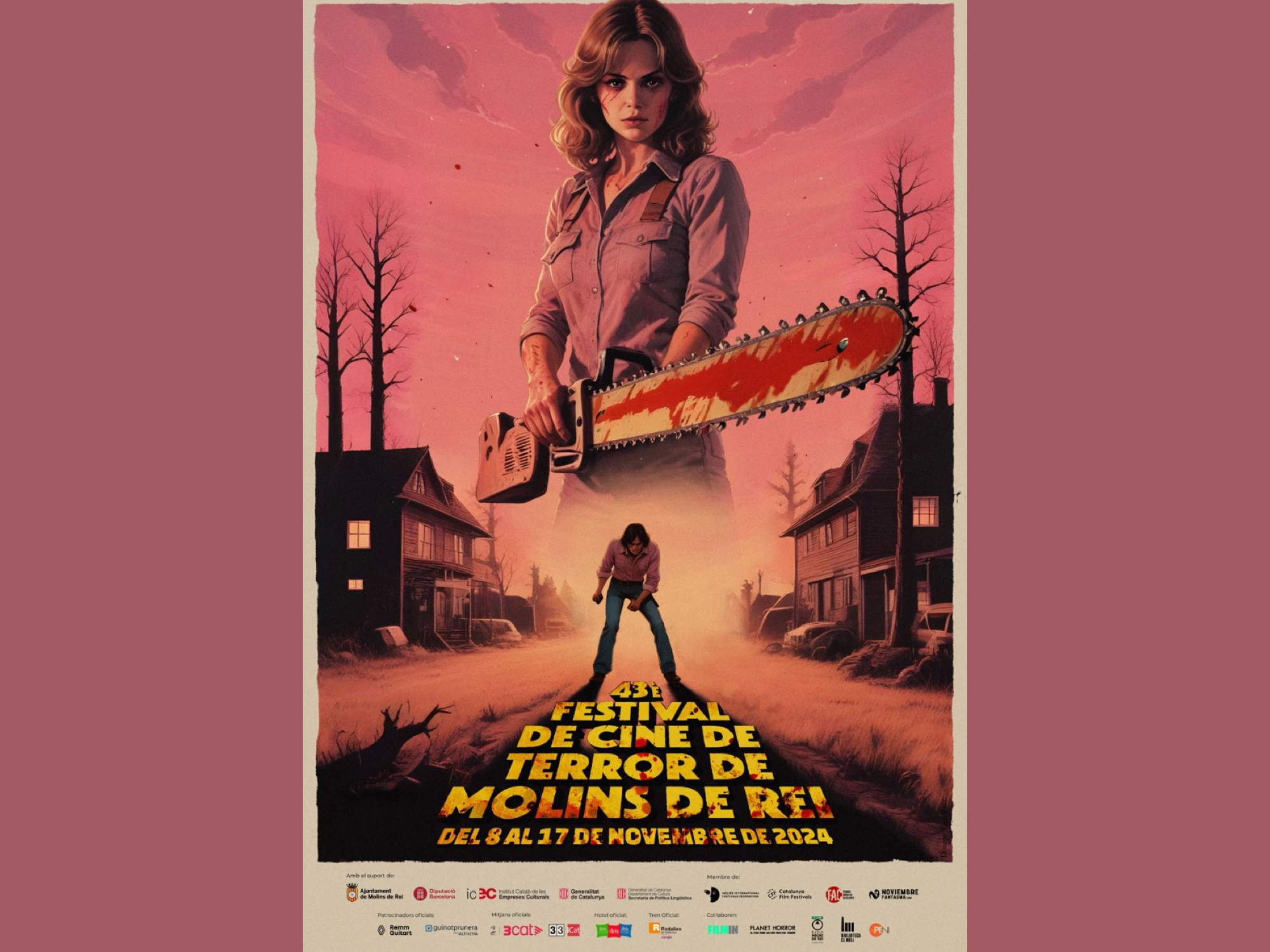 • El cartell oficial del festival, dissenyat per Paco Ruiz, encapçalat per una heroïna amb motoserra, homenatja l’imaginari del terror dels anys setanta.