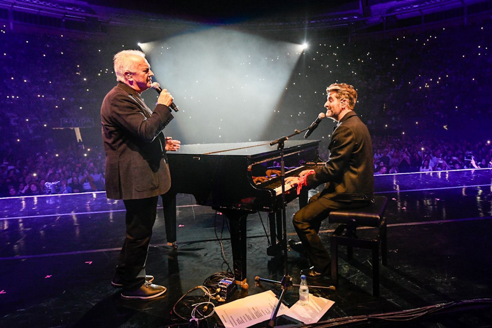 Dausà va interpretar clàssics com “Jo mai, mai”, La gran eufòria”, Truca’m” o “Ara som gegants”. Un moment força especial fou quan va aparèixer el veterà cantautor asturià Victor Manuel, que va interpretar amb Dausà “Solo pienso en ti” i “La planta 14” ( a la fotografia). També va fer acte de presència Paula Koops que va cantar amb el de Sant Feliu “Octubre 2024”, que explica una relació d’amor entre un català i una noia madrilenya. A Vistalegre també va sonar, amb una certa ironia, la cançó “Aquí no hay playa” de The Refrescos.