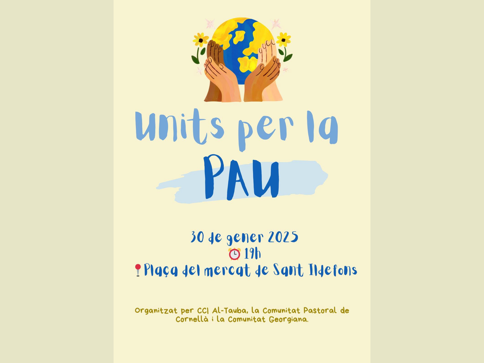 La Comunitat Pastoral de Cornellà (que aplega totes les parròquies, comunitats religioses cristianes i confraries), el Centre Cultural Islàmic Al-Tauba i la Comunitat Georgiana de la localitat organitzen, amb el suport de l’Ajuntament de Cornellà, una pregària conjunta entre les comunitats cristiana, cristiana ortodoxa i musulmana de la ciutat per reivindicar la cultura de la pau i apostar pel diàleg i la convivència entre cultures. La trobada tindrà lloc el 30 de gener, a les 19 h, davant de la porta del Mercat Municipal de Sant Ildefons.