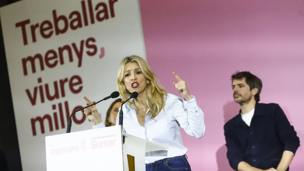 La cloenda de l’acte ha anat a càrrec del vicepresidenta Yolanda Díaz, que ha fet aixecar el públic de les cadires quan ha explicat que “la reducció de la jornada laboral ho canvia tot” i ha instat el PP i Junts a “no equivocar-se frenant la mesura”.