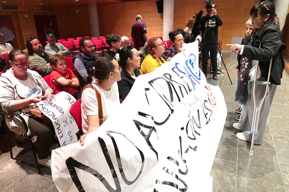 Durant la sessió, que va ser seguida per famílies i professionals afectats per aquesta crisi i que una estona abans ja s’havien manifestat a la plaça Jaume Balmes, es van viure moments de nerviosisme. Algunes persones van interpel·lar els portaveus explicant que “el que demanen a la Generalitat és que l’alumnat traslladat vagi a un mateix centre” i preocupats per si l’escola que els tocarà respon a les seves “necessitats educatives”.