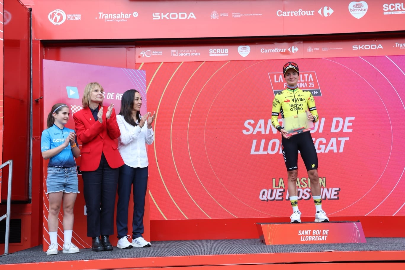 L’alcaldessa de Sant Boi i presidenta de la Diputació de Barcelona, Lluïsa Moret, va lliurar el trofeu de guanyadora de l’etapa a Marianne Vos, acompanyada per Júlia Cabada, jove corredora del Club Ciclista Sant Boi, i per l’ambaixadora de La Vuelta, Dori Ruano.
