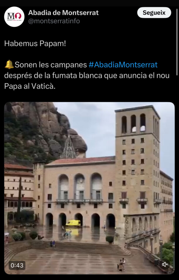 Les campanes de l’Abadia baixllobregatina han sonat després de la fumata blanca que anunciava que s’havia escollit nou pontífex, acompanyant milers de repics de campanes arreu del món, com les de la catedral de Sant Feliu de Llobregat