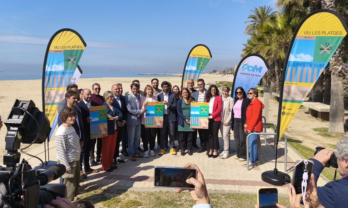L’espai de les palmeres, entre el passeig marítim i la platja del Pla de l’Os de Premià de Mar, ha estat l’escenari aquest matí de l’acte de presentació de la campanya de ‘Platges sense fum’ de la Diputació de Barcelona.