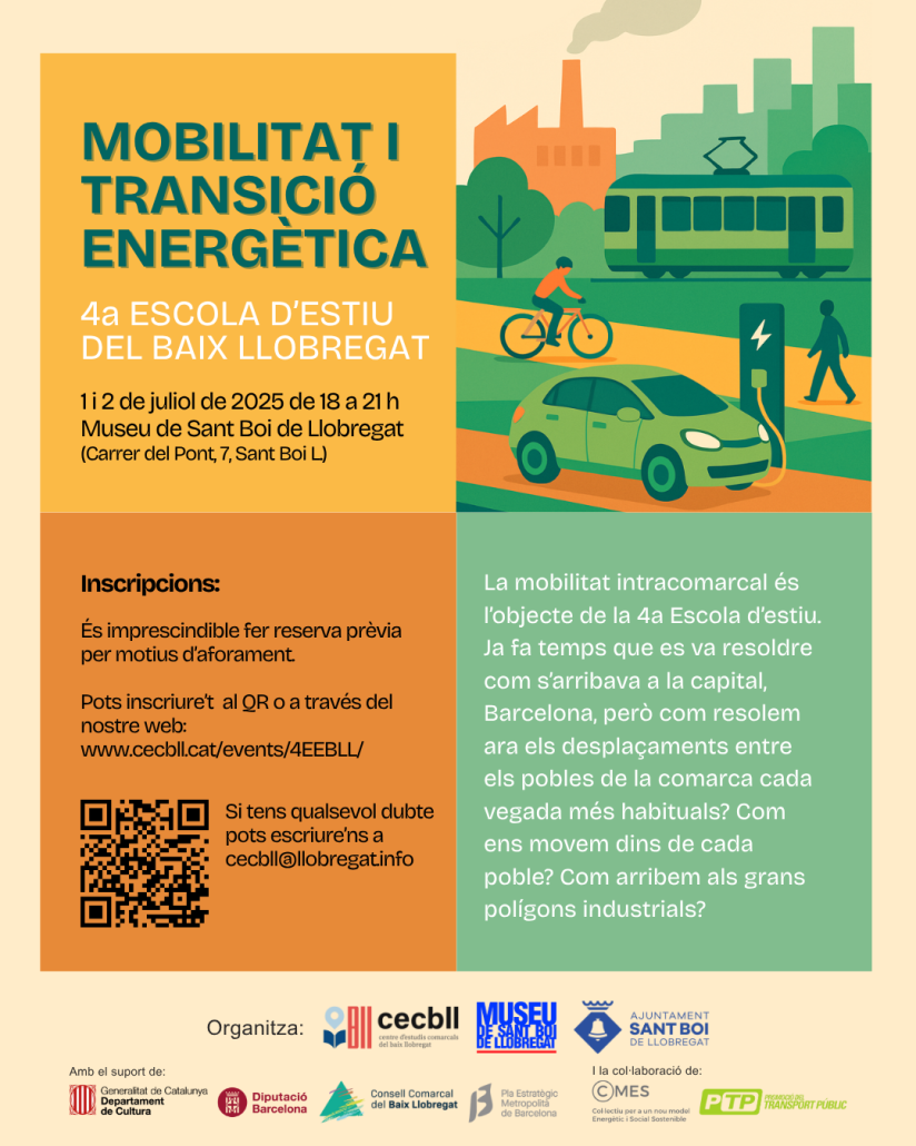 El dimarts dia 1, la catedràtica de Geografia Urbana de la UAB, Carme Miralles, analitzarà “El context històric del transport a la comarca del Baix Llobregat i l’entorn metropolità”, Carles Riba, president del CMES i expresident del CECBLL parlarà sobre “Transició energètica i transport”, i Lluís Carrasco, membre del grup GITE Baix Llobregat i de la PTP, exposarà el tema “El futur del transport intercomarcal”.