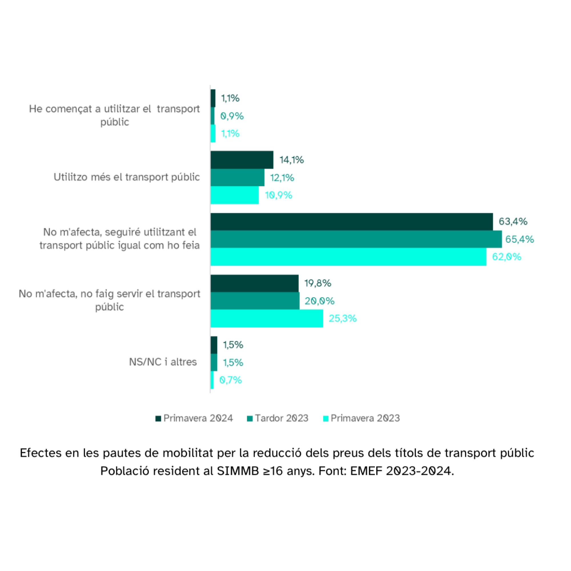 Altres dades destacades inclouen un augment del 8,6% en l’ús del transport públic respecte a 2023, i la valoració molt positiva de la T-mobilitat (8,3 sobre 10), amb un ús que ha passat del 17% al 51% en només un any.