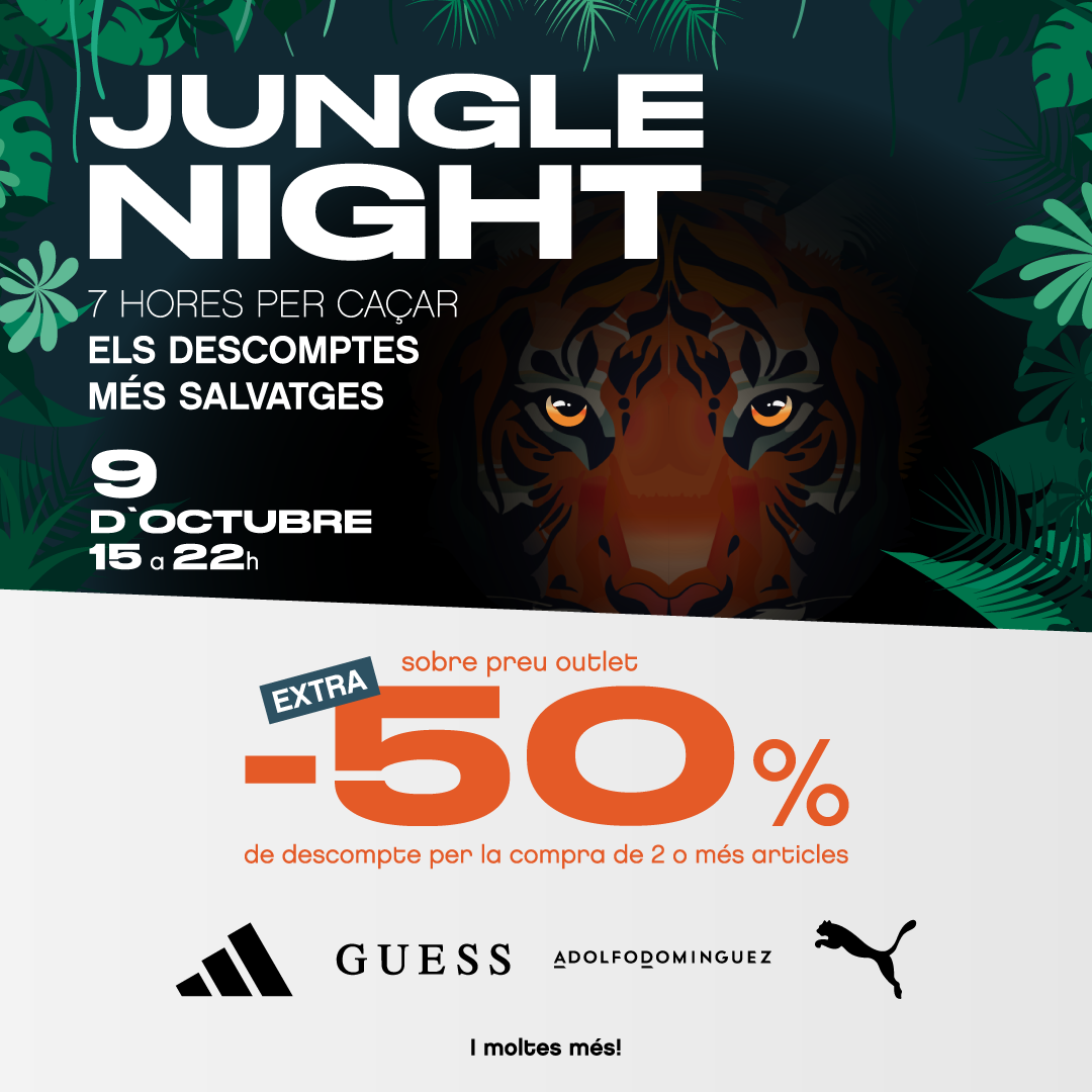 Però la Jungle Night no és només una jornada de compres, és una experiència completa que ho té tot: selfie points amb animals salvatges XXL i fotografies instantànies amb Polaroid; DJs en directe; pintacares per als més petits… També hi haurà un incentiu extra per als més foodies: per cada compra superior a 60€, es regalarà un tiquet de 5€ per a gastar en restauració (fins a esgotar existències).