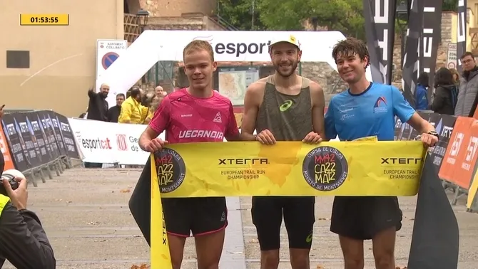 El corredor de Sant Vicenç dels Horts Andreu Simon ha guanyat per vuitena vegada la Cursa en categoria masculina per davant de Lluc Torné i Ricard Tenza (a la fotografia) .