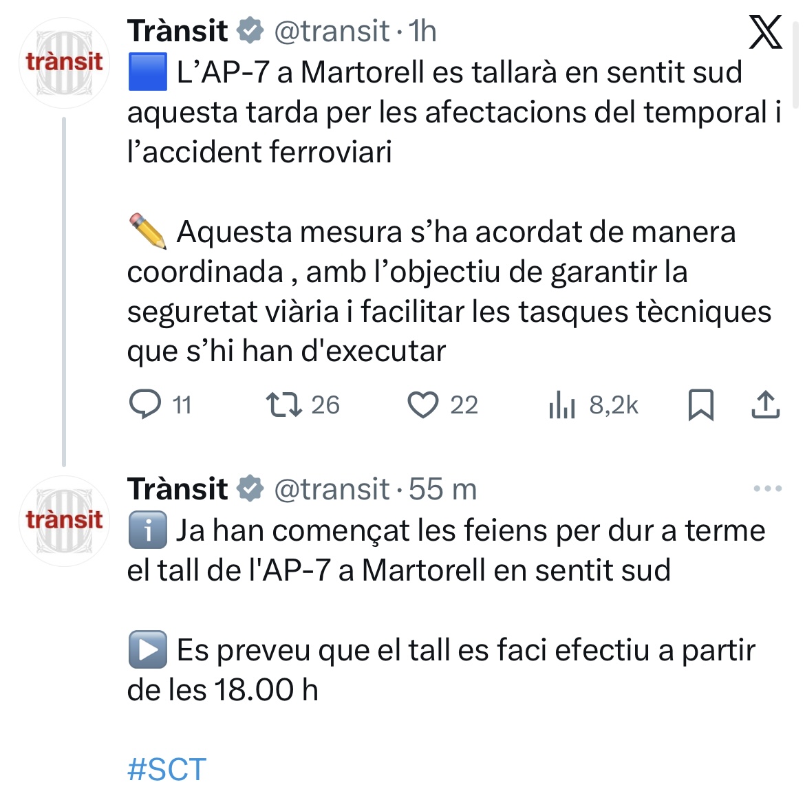 Les autoritats continuen treballant per garantir la seguretat de la infraestructura i informaran puntualment de l’evolució de les restriccions i possibles restabliments de la circulació.