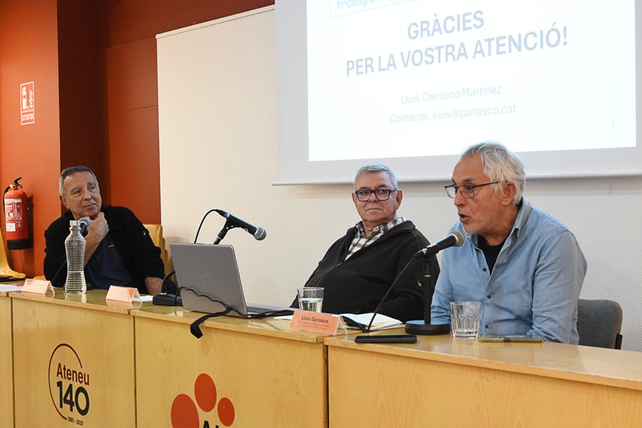 L’acte va consistir en dues ponències presentades per dos especialistes, que van analitzar la situació i el futur del transport públic ferroviari: una de caràcter més global i nacional a càrrec de Pau Noy, i una enfocada a la realitat comarcal del Baix Llobregat a càrrec de Lluís Carrasco