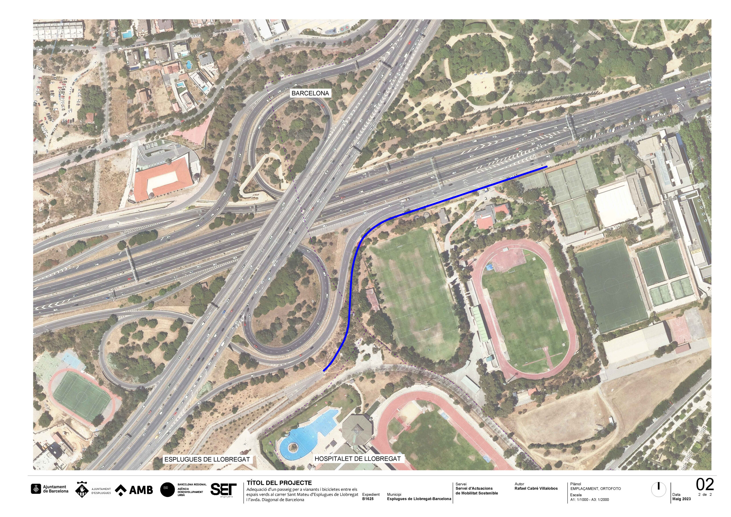 La nova infraestructura inclourà aproximadament 400 metres de recorregut, amb un carril bici bidireccional de tres metres d’amplada i un itinerari específic per a vianants. El traçat començarà al carrer Sant Mateu i connectarà amb l’entorn de la Diagonal, facilitant els desplaçaments a peu i en bicicleta entre Esplugues i la capital catalana.