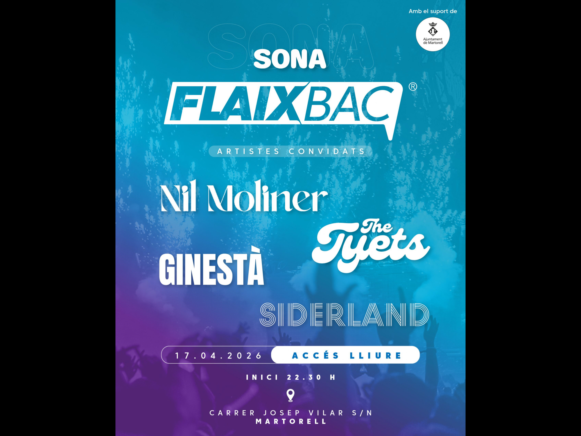 Martorell donarà el tret de sortida a la seva Fira de Primavera 2026 amb una gran aposta musical: el nou Sona Flaixbac, que reunirà artistes destacats del panorama català com Ginestà, Siderland, Nil Moliner i The Tyets. L’esdeveniment tindrà lloc el 17 d’abril al carrer de Josep Vilar i substituirà l’antic format de l’Anual Flaixbac