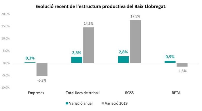 L’Observatori comarcal del Baix Llobregat ha publicat l’anàlisi dels components de l’estructura productiva corresponents al tercer trimestre de 2025, que mostra una tendència positiva en l’ocupació i una lleugera recuperació del teixit empresarial després dels anys més complexos postpandèmics