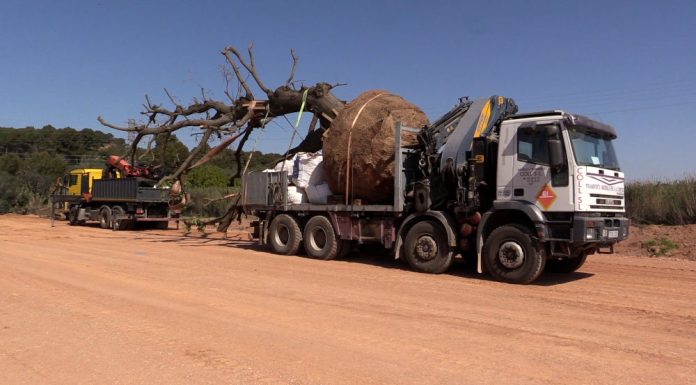 Acció protectora o agressió al medi ambient? Aquests dies han començat els treballs de trasllat (a la fotografia) i trasplantament dels arbres amb valor patrimonial o ecològic que es troben en el sector del Pla de Ponent.