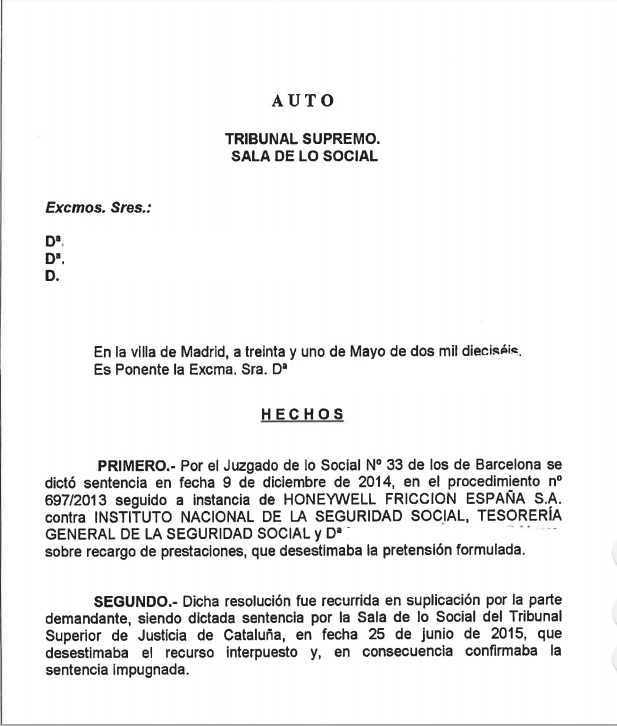 La Sala Social del Tribunal Suprem ha desestimat el recurs interposat per l'empresa Honeywell Fricción (antiga Jurid Ibérica i actual Federal Mogul) contra la...