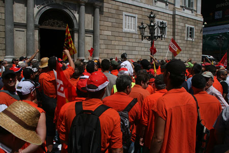 Treballadors i treballadores i sindicats de la comarca reivindiquen el manteniment dels drets laborals, davant una onada d'acomiadaments i rebaixes salarials