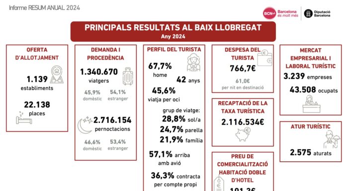 Segons l’Informe anual 2024 sobre l’activitat turística al Baix Llobregat, elaborat pel Laboratori de Turisme de la Diputació de Barcelona, el sector turístic de la comarca va experimentar, durant l’any passat, novetats rellevants en termes de despesa, origen i...