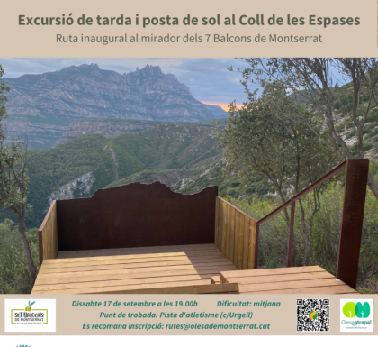 L’Ajuntament d’Olesa de Montserrat ha organitzat una excursió gratuïta per inaugurar el Mirador del Coll de les Espases (a la fotografia). Tindrà lloc aquest proper dissabte, 17 de setembre, i començarà a les 7 del vespre a la Pista...