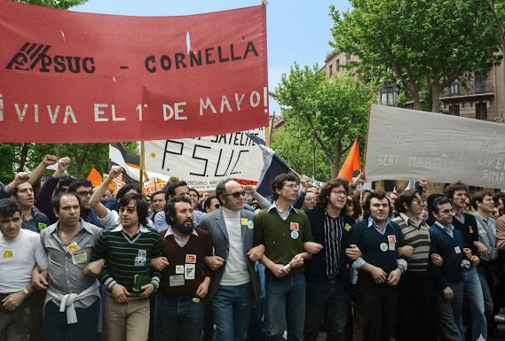 El cartell té tres versions. El rerefons és de color groc i les lletres són vermelles, simbolitzant la...