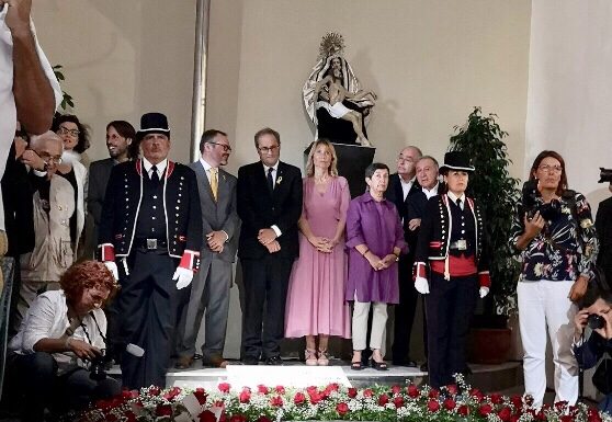 El president de la Generalitat, Quim Torra, i la delegada del govern espanyol a Catalunya, Teresa Cunillera, han encapçalat aquest dimarts la tradicional ofrena floral a la tomba de Rafael Casanova, a Sant Boi de Llobregat, amb motiu de...