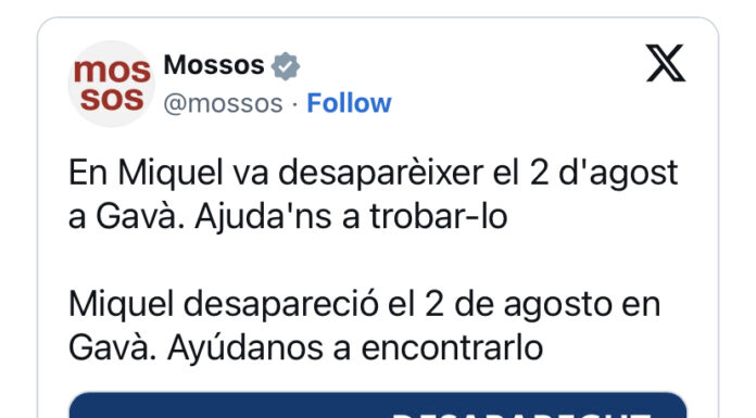 En Miquel va ser vist per última vegada dimecres de la setmana passada i podria estar desorientat