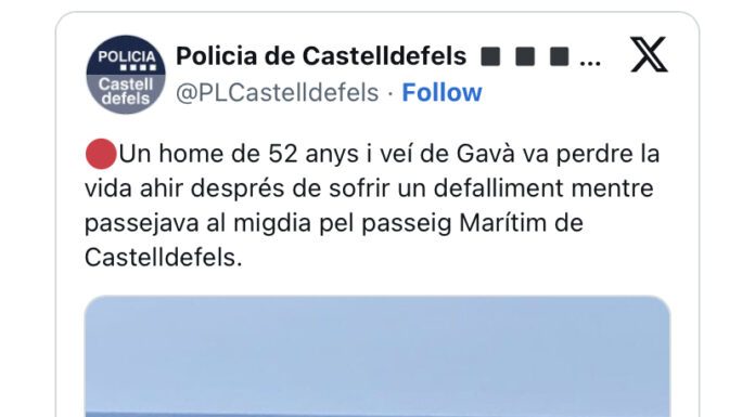Un veí de Gavà, de 52 anys, va morir aquest diumenge 13 d'agost, després de patir un desmai al passeig marítim de Castelldefels.