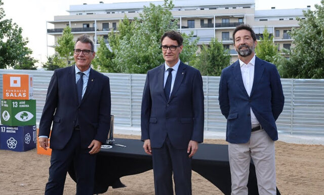 •El president de la Generalitat, Salvador Illa, va encapçalar aquest dissabte al vespre l'acte de col·locació de la primera pedra de l'Edifici Fòrum, la tercera promoció d'habitatge de protecció oficial (HPO) al barri de la Sínia de Martorell (Baix...