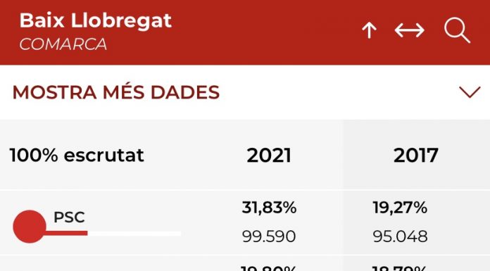 El PSC s'imposa al Baix Llobregat, seguit per ERC i JxCat