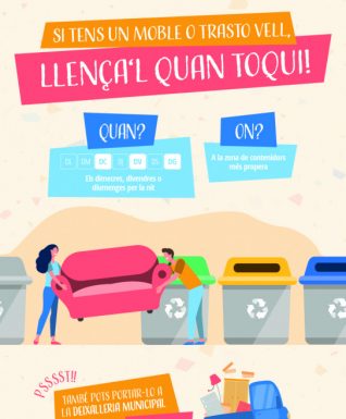 Si fins ara es podien deixar aquest tipus de residus voluminosos al costat del contenidor qualsevol dia de la setmana, a partir d’ara es podran deixar a les zones de contenidors els dimecres, divendres i diumenges a la nit,...