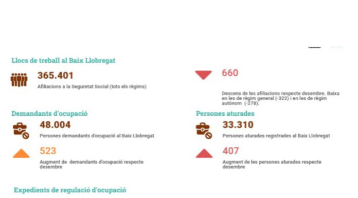 L’Observatori comarcal actualitza les dades mensuals del mercat de treball del Baix Llobregat i destaca l’augment dels demandants d’ocupació, l’atur...