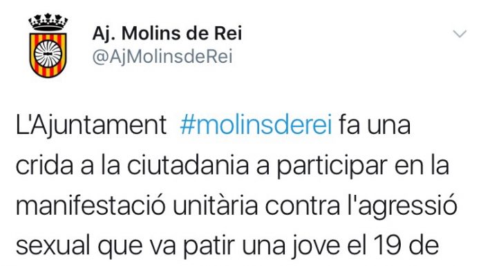 Centenars de persones es van manifestar aquest dilluns al vespre a Molins de Rei per condemnar l’agressió sexual múltiple que va patir una...