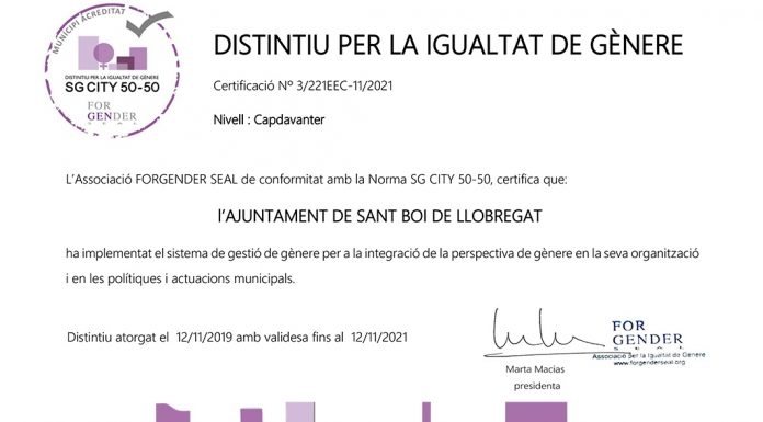 El municipi de Sant Boi ha estat acreditat amb el Distintiu per a la Igualtat de Gènere Norma SG City 50-50. És...
