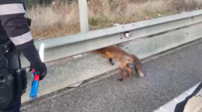 Una patrulla de Trànsit dels Mossos ha vist l'animal amb el cap atrapat i l'ha rescatat ajudant-se d'una pota de cabra