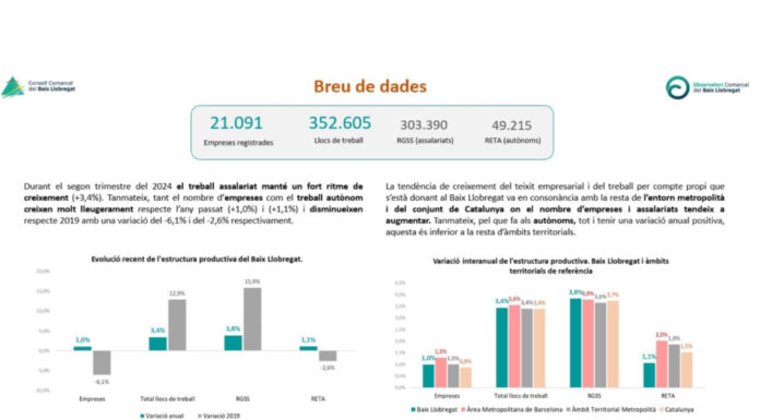 L’Observatori comarcal del Baix Llobregat publica l’anàlisi dels components de l’estructura productiva corresponents al segon trimestre de 2024. Aquest és una anàlisi que es concentra tant, en l’anàlisi general dels diferents components de l’estructura productiva (empreses, llocs de treball...