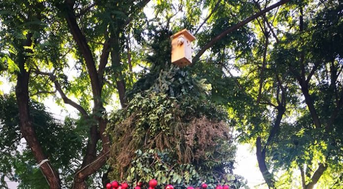 Està fet amb restes de poda de les muntanyes de Sant Boi i s'il·lumina amb llum solar