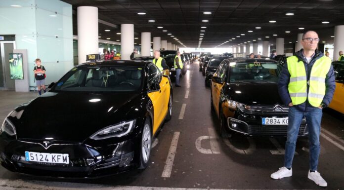 Nova jornada de protestes dels taxistes a l’aeroport del Prat aquest dilluns, 17 d’abril ( a la fotografia). Està previst que les mobilitzacions s’allarguin quatre dies. Aquesta primera protesta va durar una hora i va deixar sense taxis la...